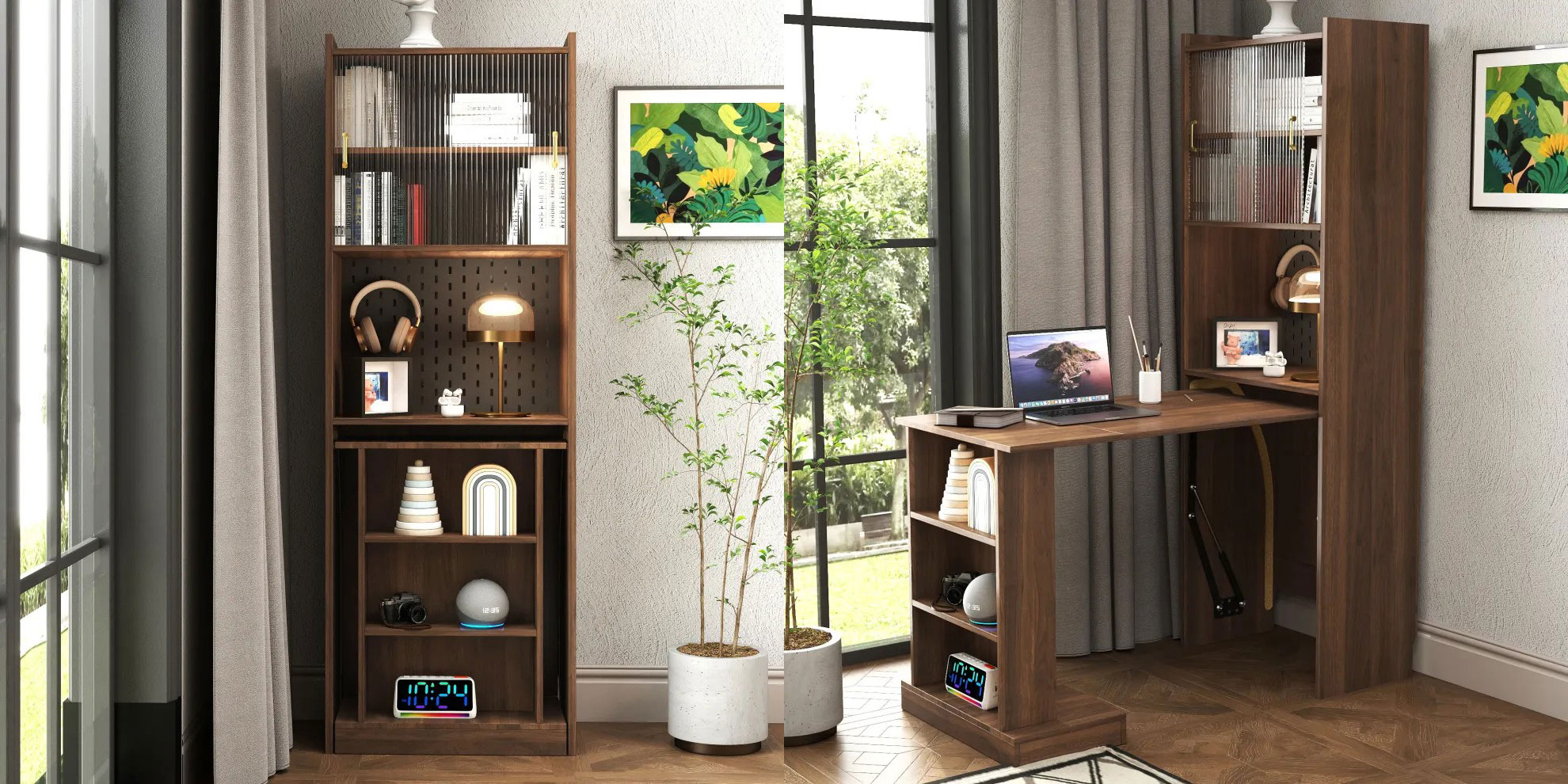 This isn’t just a desk; it’s a multifunctional command center that disappears when you’re done. For small apartments or shared living spaces, it’s the ultimate space-saving furniture piece—clean, modern, and brilliantly efficient.