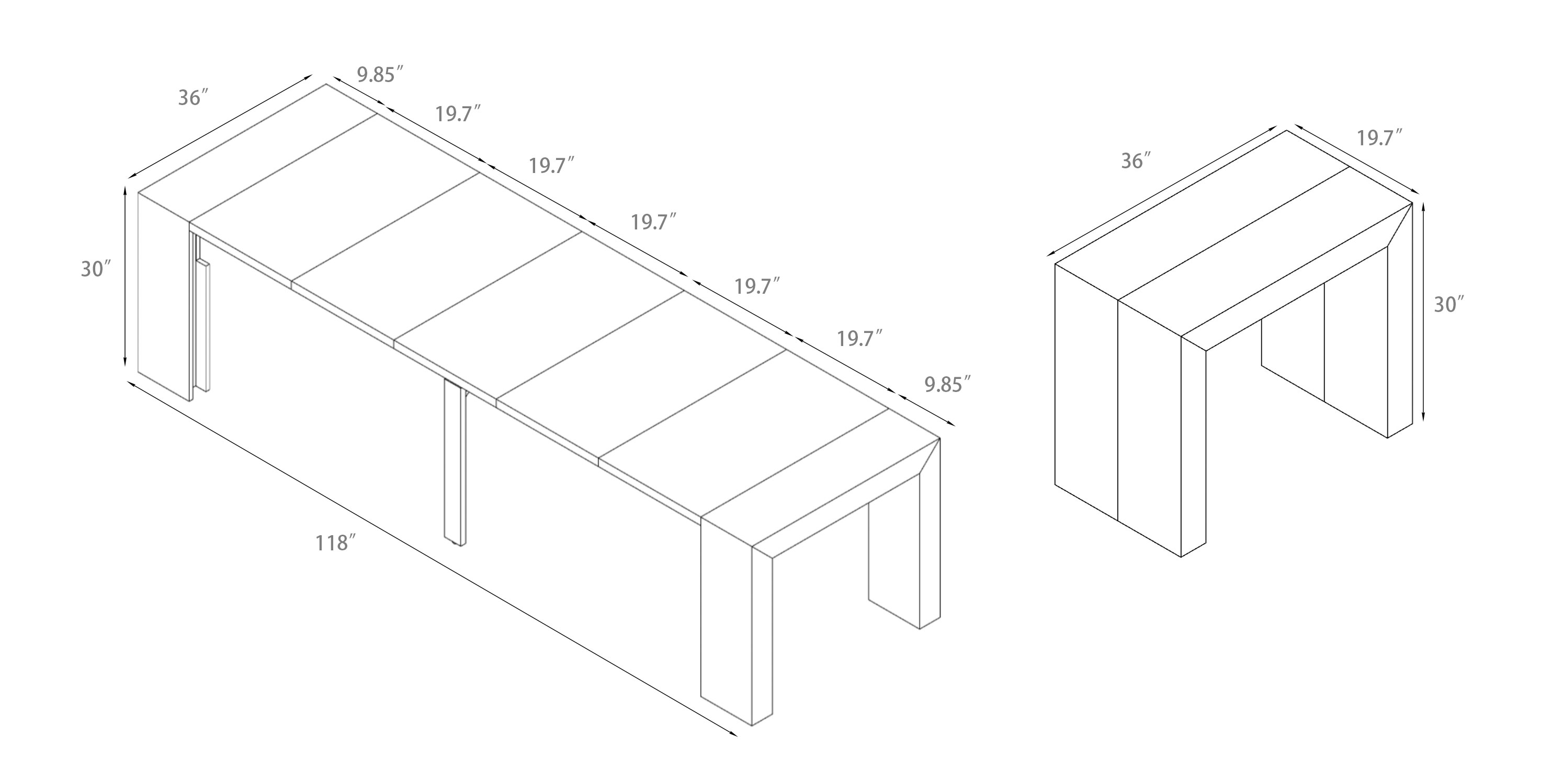 Six intentional configurations from 19.7" to 118" adjust naturally to your space and your gatherings. - Substantial Presence