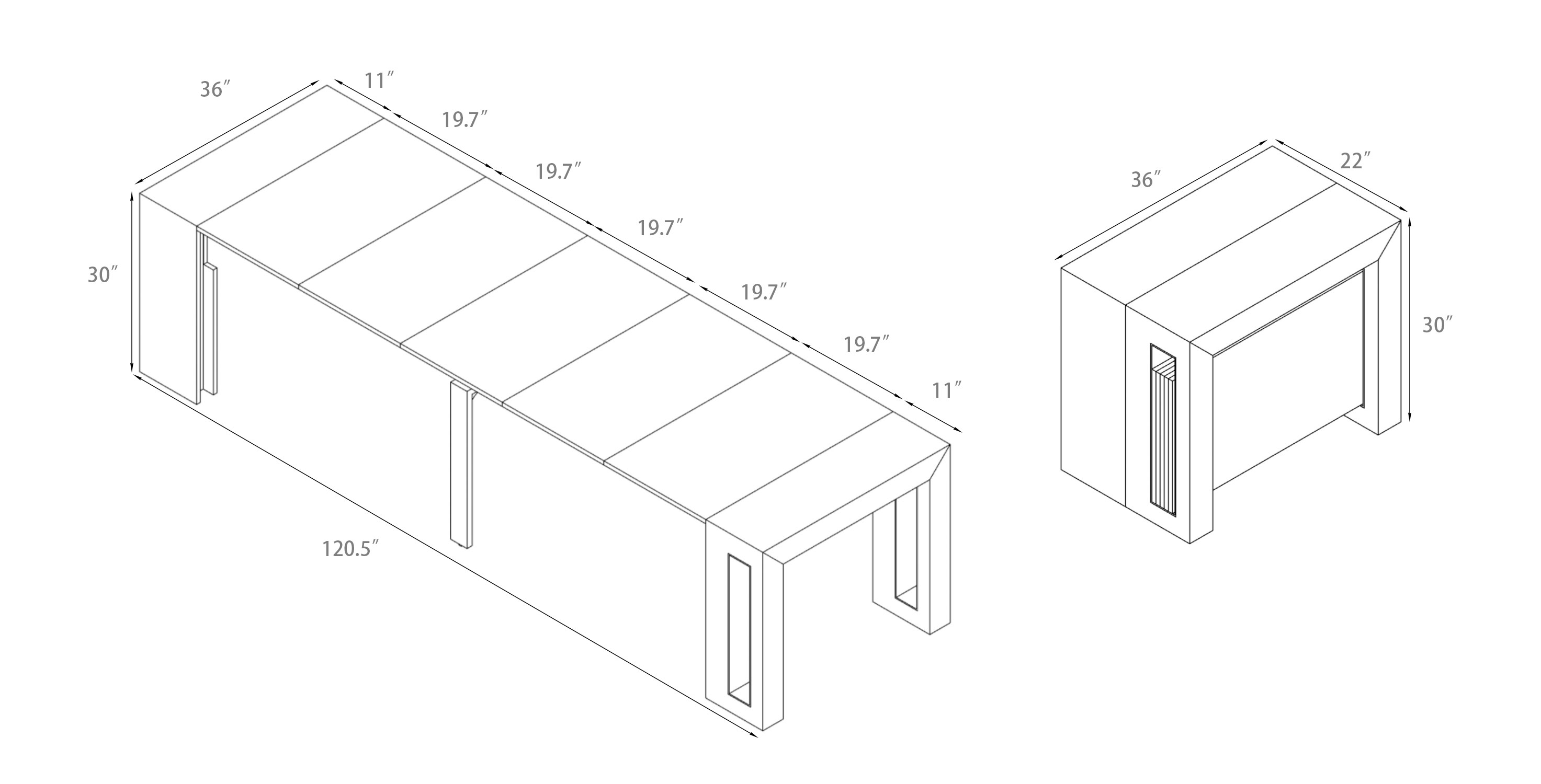 Most dining tables force you to choose a size and live with it forever. Joysource believes furniture should adapt to real life. At 22 inches, this table is a sleek console that barely whispers along your wall. At 120 inches, it's a commanding dining table that seats 12 for the holidays. And with four configurations in between, it adapts to however many people show up—whether that's Tuesday dinner for two or Sunday brunch for eight.
